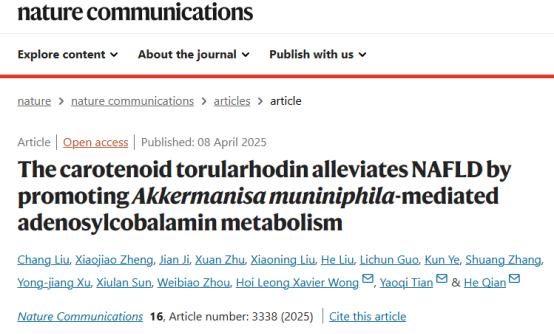 分析測試中心代謝組學平臺助力科研團隊發(fā)表Nature Communications